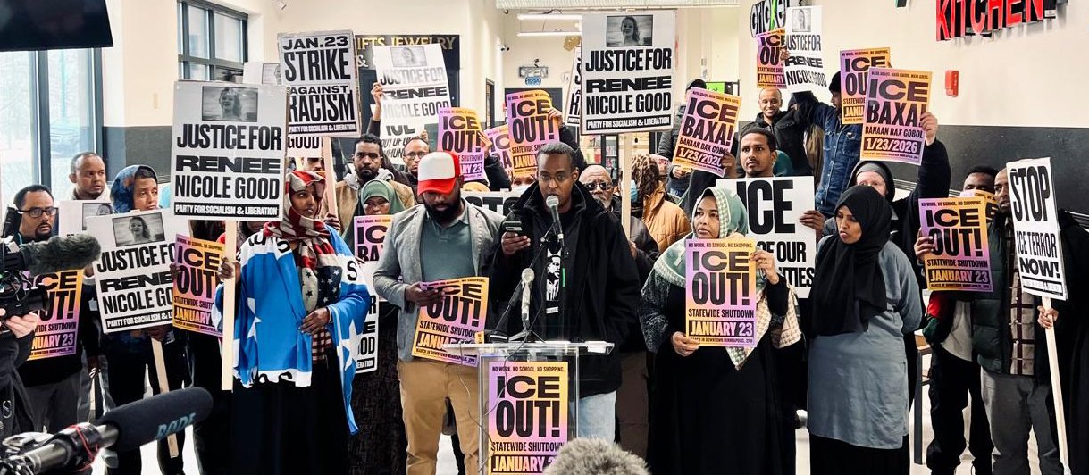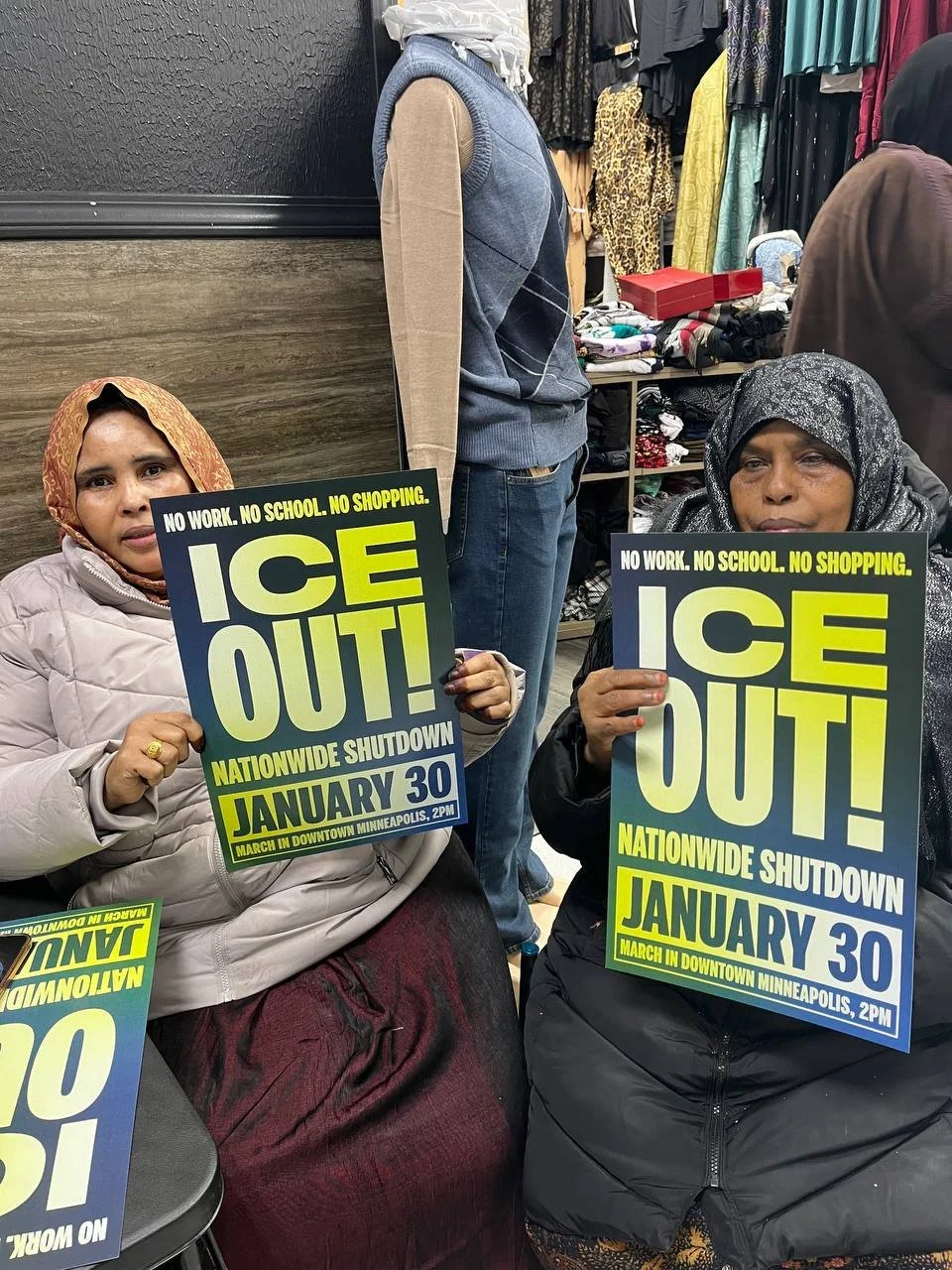 We are neighbors united an organization started by members of the Somali community at Karmel Mall in minneapolis to fight for justice in the wake of racist ICE attacks